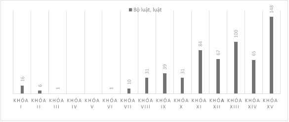 Biểu đồ 2: Số lượng bộ luật và luật được Quốc hội thông qua trong các nhiệm kỳ