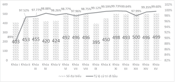Biểu đồ 1: Số lượng Đại biểu Quốc hội và tỷ lệ cử tri bầu cử Quốc hội