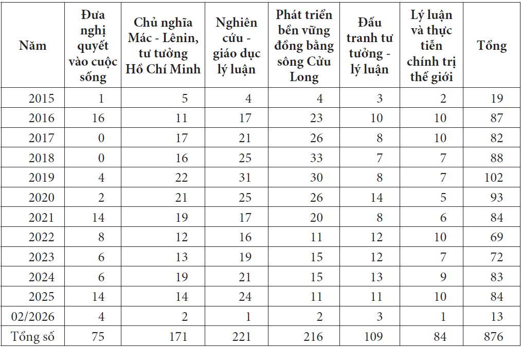Nguồn: Tổng hợp từ mục lục các số của Tạp chí (2026)